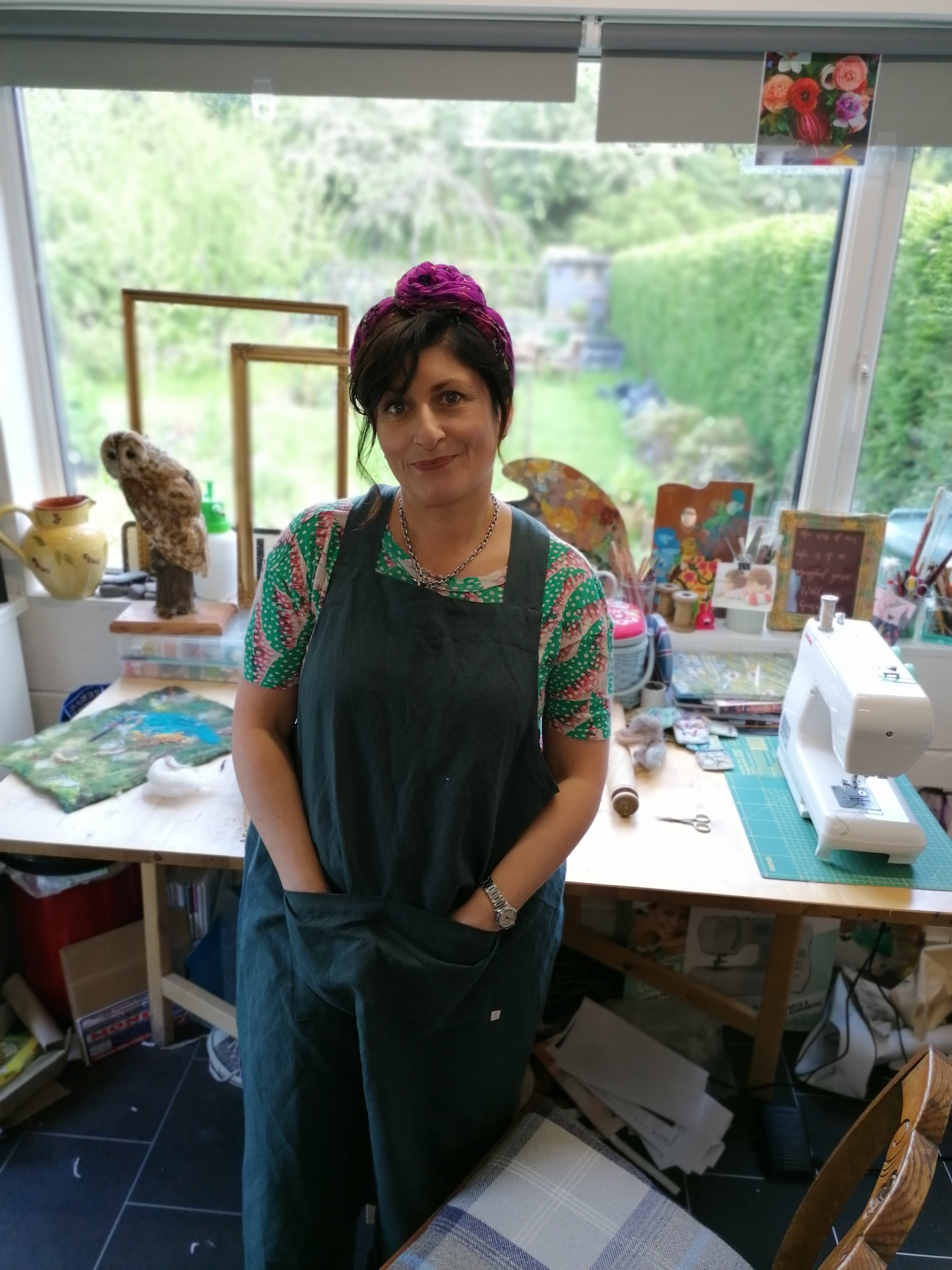 Lynne’s artwork combines a variety of techniques, particularly felting, embroidery, and the use of mixed media. The media that she uses are mostly natural - wool and silk - but also incorporate recycled fabrics. The artworks she creates are inspired by a mix of the natural, the fabricated, and the human. Her work often includes details of flowers, drawing both from life and from the history of art, inspired by the rich representations found in classical, floral still life. Her art often includes portraits, usually representing faces of modern women set against these luscious backgrounds. These women are strong, independent, reflective.